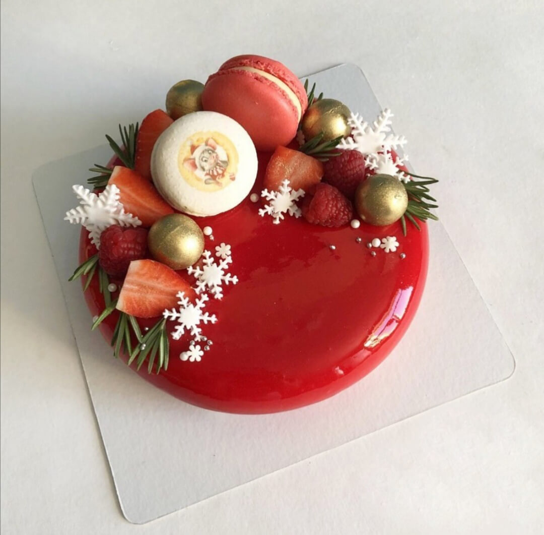 Нежный мусс и клубничные макаруны в такой приятной новогодней палитре цветов!