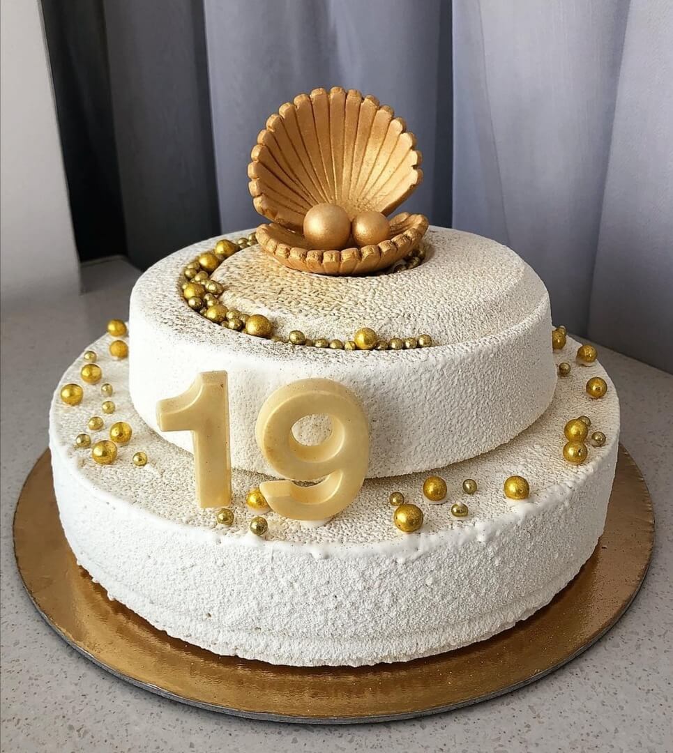 Благородное оформление торта в жемчужном стиле не останется на празднике незамеченным, а муссовая нежность такого подарка придется по вкусу даже искушенным гурманам