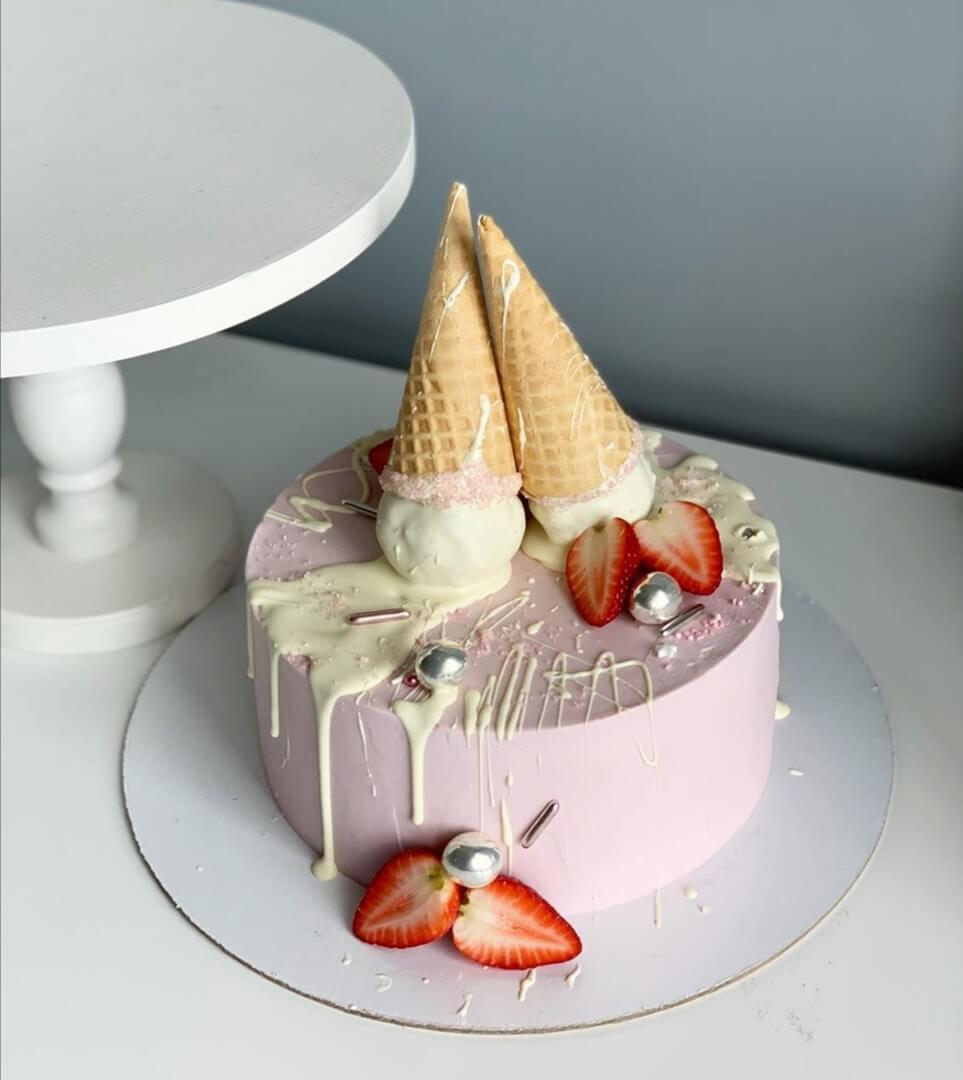Милейший тортик, оформленный в теме любимого мороженного в вафельных рожках - без мороженного, но эмоций и вкуса не меньше!