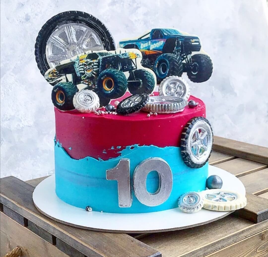 Одна из любовей мальчишек - яркие и громкие машины с огромными колесами! Украсим поздравительный тортик в тему вездеходных машинок